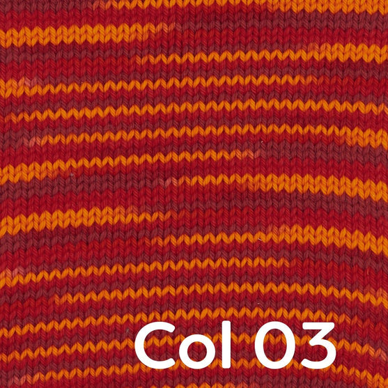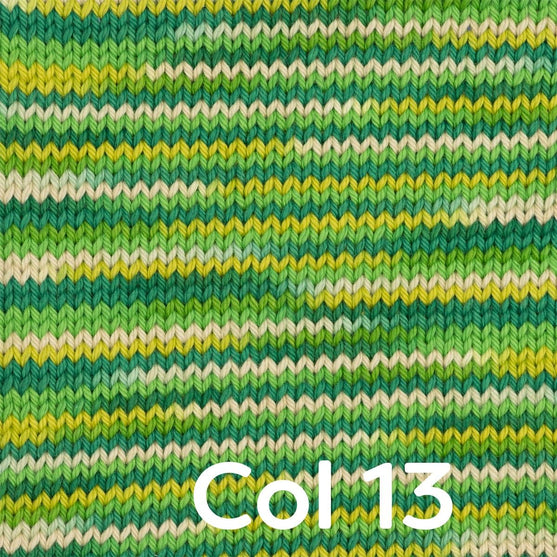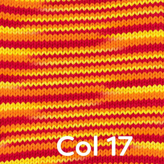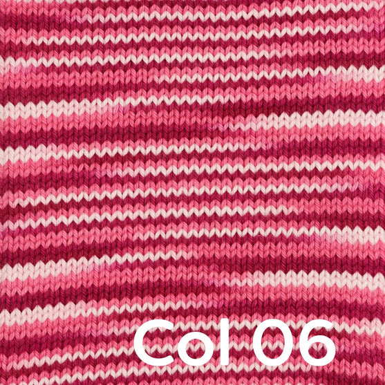 Wielokolorowe motki w żywych tonach i bardziej zabawnych tęczowych odcieniach. We wszystkich przypadkach paleta kolorów jest żywa, energetyczna i intensywna. Wszystkie kolory zawarte w Friends Cotton 8/4 Print można znaleźć w jednolitych motkach Friends Cotton 8/4. Poniżej znajdziesz dokładne zestawienie, które jednolite kolory są zawarte w każdym motku wielokolorowym.