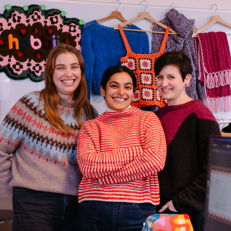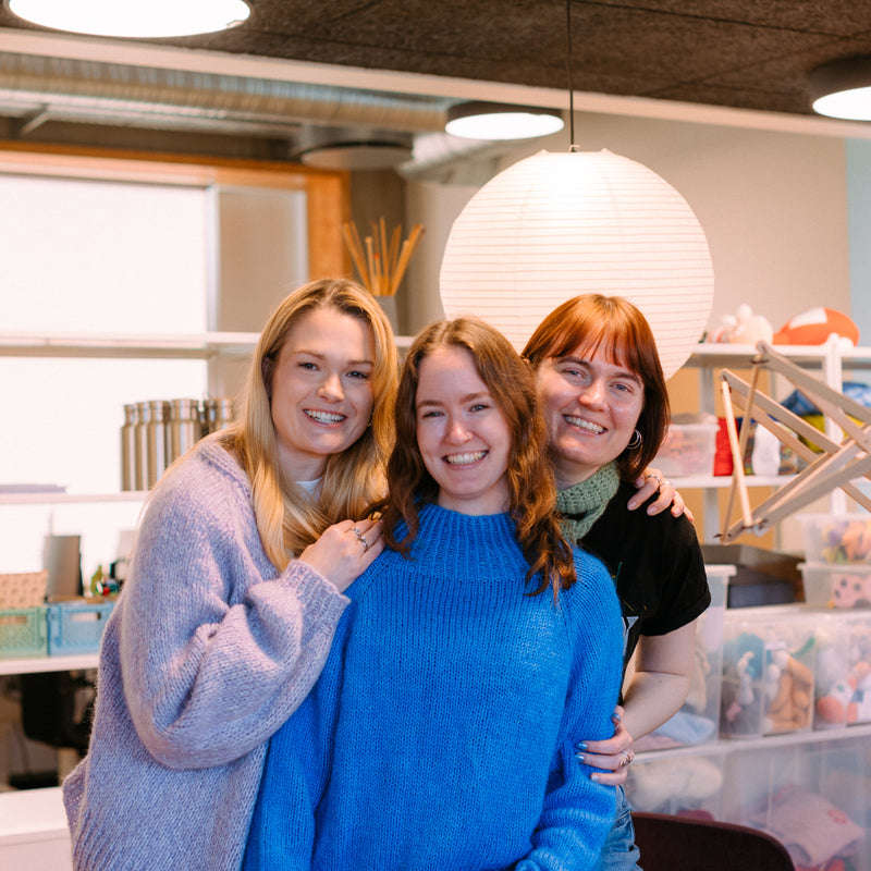 Sif, Sabina i Kat są częścią naszego zespołu Produktowego, dbają o naszą niesamowitą bibliotekę włóczek i akcesoriów oraz o to, by wszystkie informacje były dostępne w sklepie internetowym. Mają wyczulone oko na jakość, dotyk, kolor, trwałość i detale, które naprawdę mają znaczenie w gotowym projekcie. To oni współtworzą wszystko, z czego później tworzysz, od pięknych włóczek po zestawy drutów i szydełek, torby projektowe i sprytne akcesoria, które ułatwiają pracę.