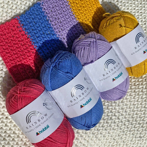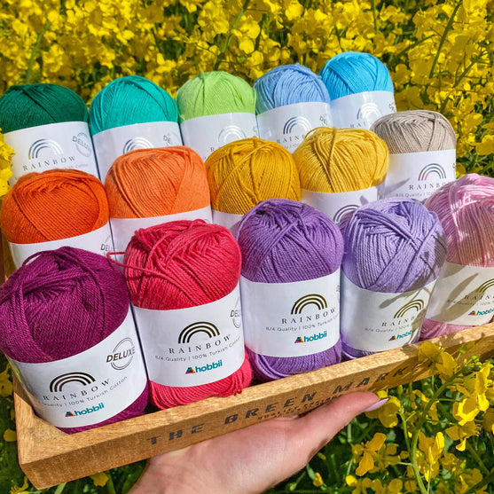 Podobnie jak inne nasze przędze wykonane w 100% z bawełny, Rainbow Deluxe wytrzymuje pranie w wysokiej temperaturze – ale pranie w wysokiej temperaturze nieuchronnie powoduje blaknięcie kolorów. Jeśli nie dziergasz/szydełkujesz myjek lub ręczników, zalecamy pranie w temperaturze 40°C.