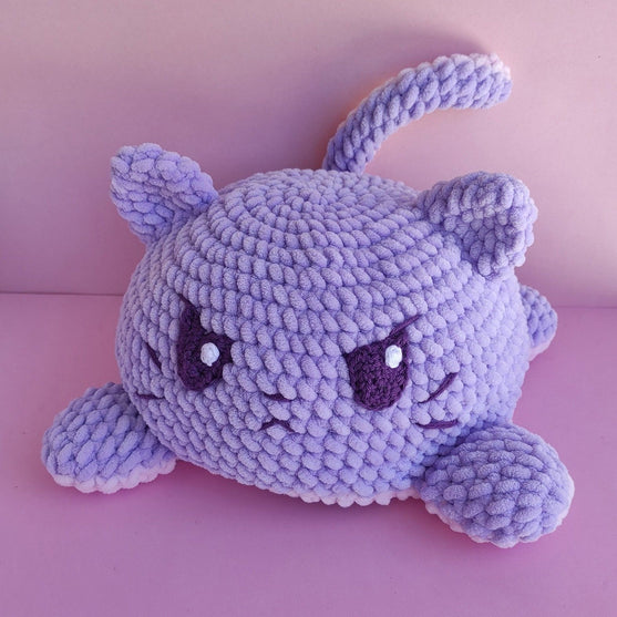 Moody to uroczy kot, który może być trochę kapryśny. Został wykonany na szydełku i jest dwustronny, więc może być zły lub szczęśliwy. Do wykonania kotka została użyta Baby Snuggle Solid, która jest wyjątkowo miękką włóczką dostępną w pięknych kolorach. Możesz go wyszydełkować w swoich ulubionych kolorach i z wyrazem twarzy, który uważasz za najzabawniejszy.