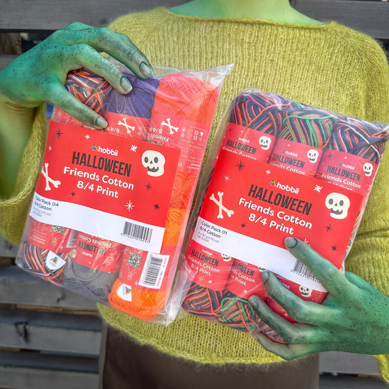 Te niesamowite pakiety 6-motków zawierają jasną, upiorną mieszankę drukowanych i jednolitych motków z naszej kolekcji Friends Cotton 8/4. Pakiety będą idealne, jeśli potrzebujesz inspiracji, jakie kolory wybrać do swojego kolejnego projektu na Halloween, a także będą świetną opcją do tworzenia mniejszych projektów lub projektów, które wymagają kilku zmian kolorów.